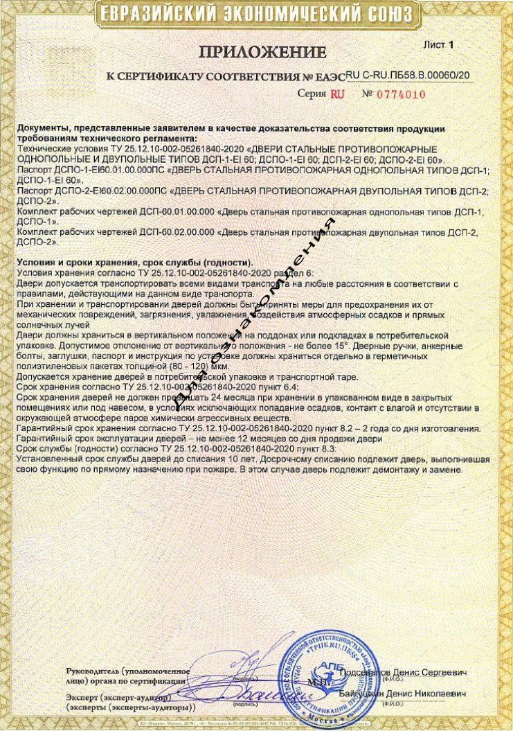 • Паспорт на противопожарную дверь с серийным номером изделия (входит в комплект);