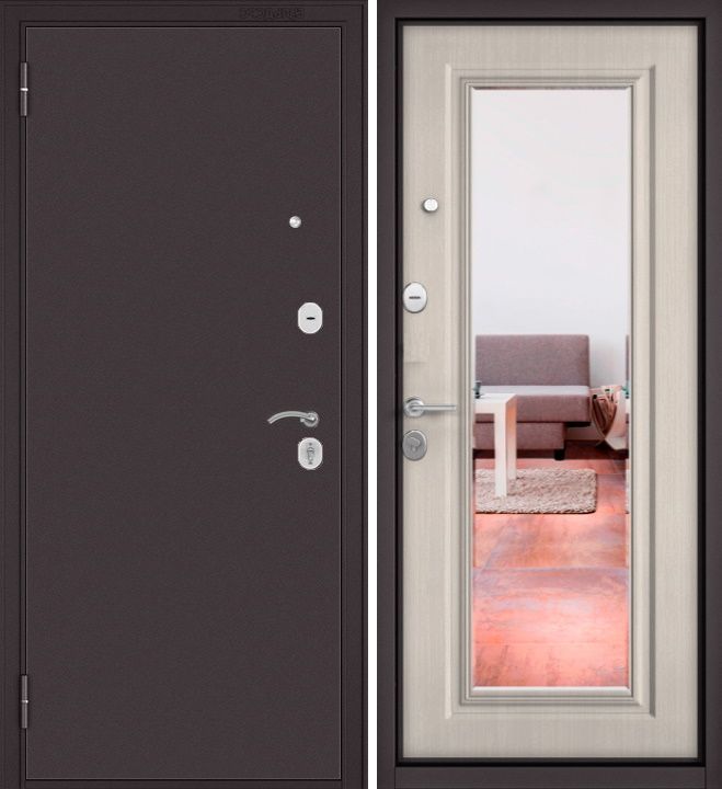 Входная дверь в квартиру Мастино (Бульдорс) Econom 60/140 (Букле шоколад - Ларче бьянко, зеркало) фото 3