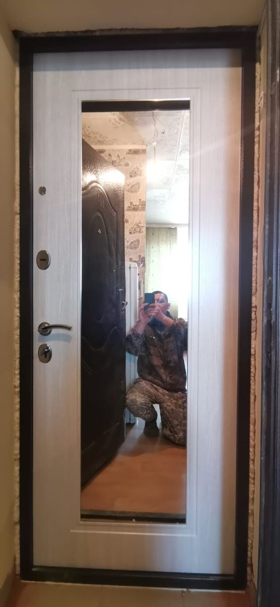 Входная дверь в квартиру Мастино (Бульдорс) Econom 60/140 (Букле шоколад - Ларче бьянко, зеркало) фото 4