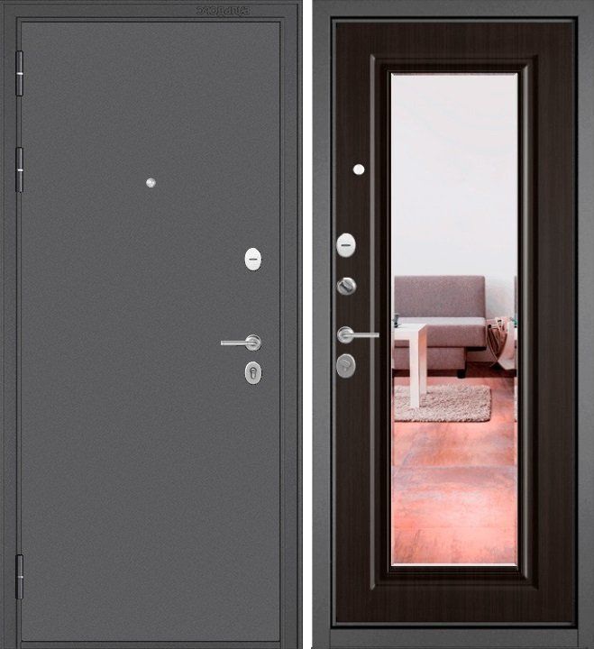 Артикул: Дверь стальная Мастино TRUST MASS 140 Графит букле-Ларче шоколад, зеркало 860 левая
