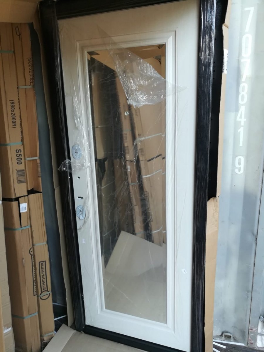 Входная дверь в квартиру 7,5 см Гарда Серебро Зеркало Фацет МДФ Белый ясень
