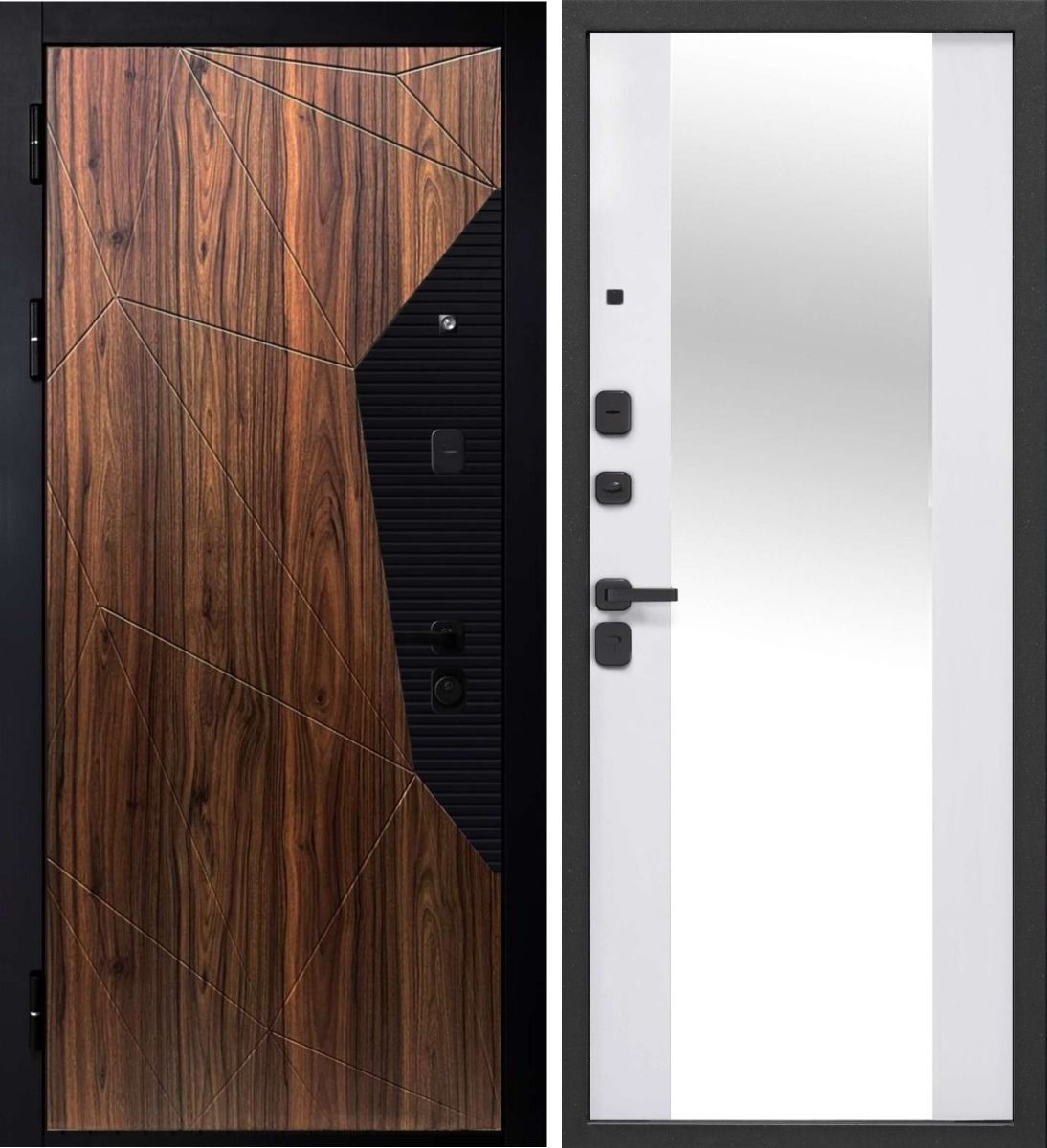 Входная дверь 9 см мдф/мдф Геометрия МДФ Орех Каньон Коньяк - Эмалит белый Зеркало — купить в Одинцово по цене 35 000 руб. — RosDoor (Сталь-сервис)