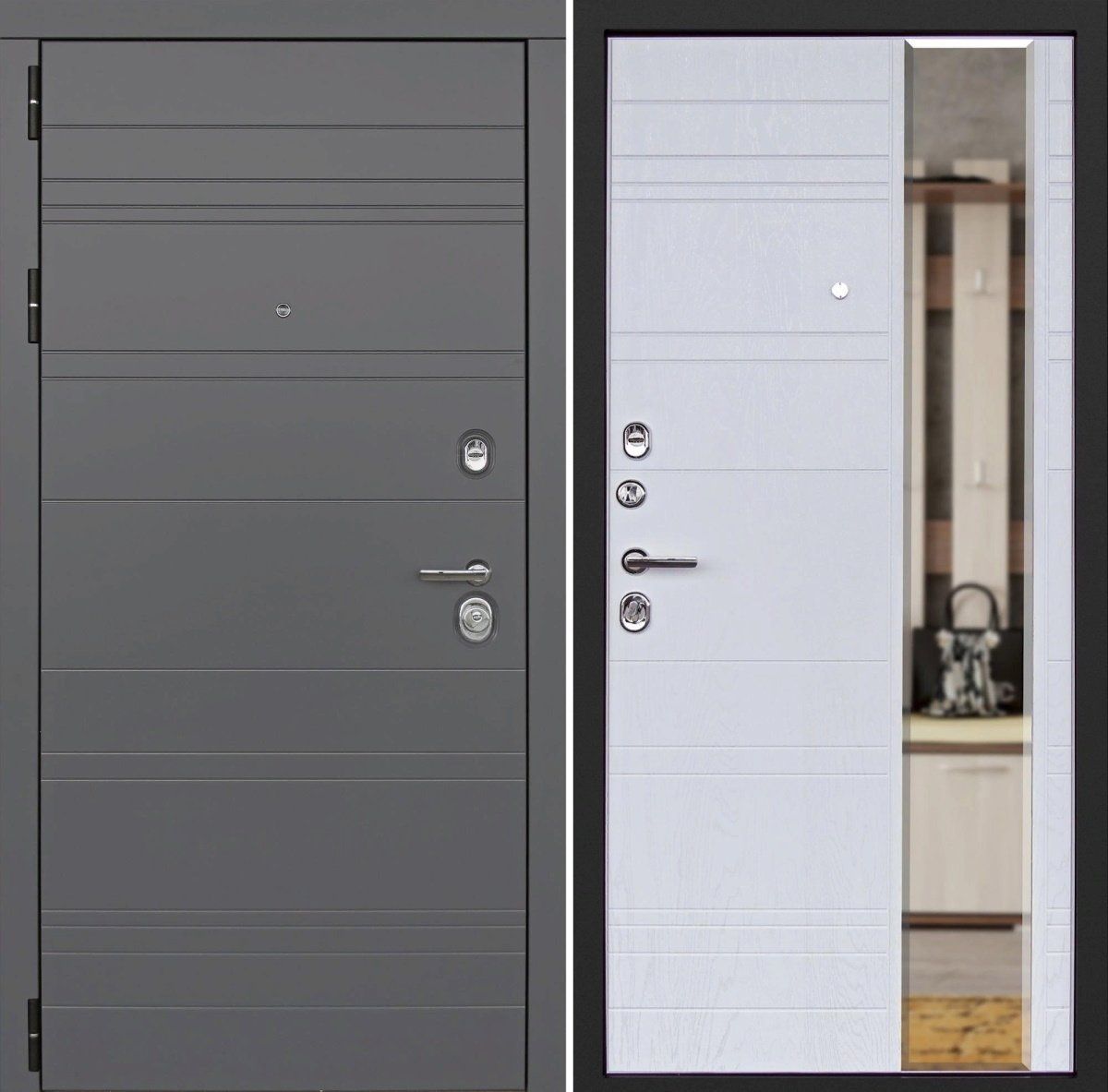 Входная дверь Дверной континент Новелло Графит софт МДФ Альберо браш белый с зеркалом, цена в Одинцово 42 950 руб. — RosDoor (Сталь-сервис)