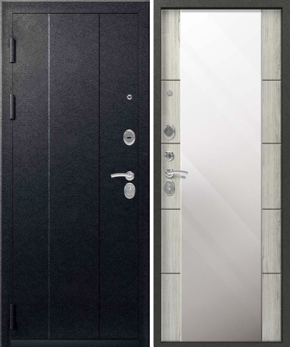 Входная дверь с большим зеркалом Эталон Х-4 Черный муар - Дуб полярный — купить в Одинцово