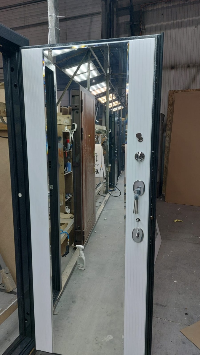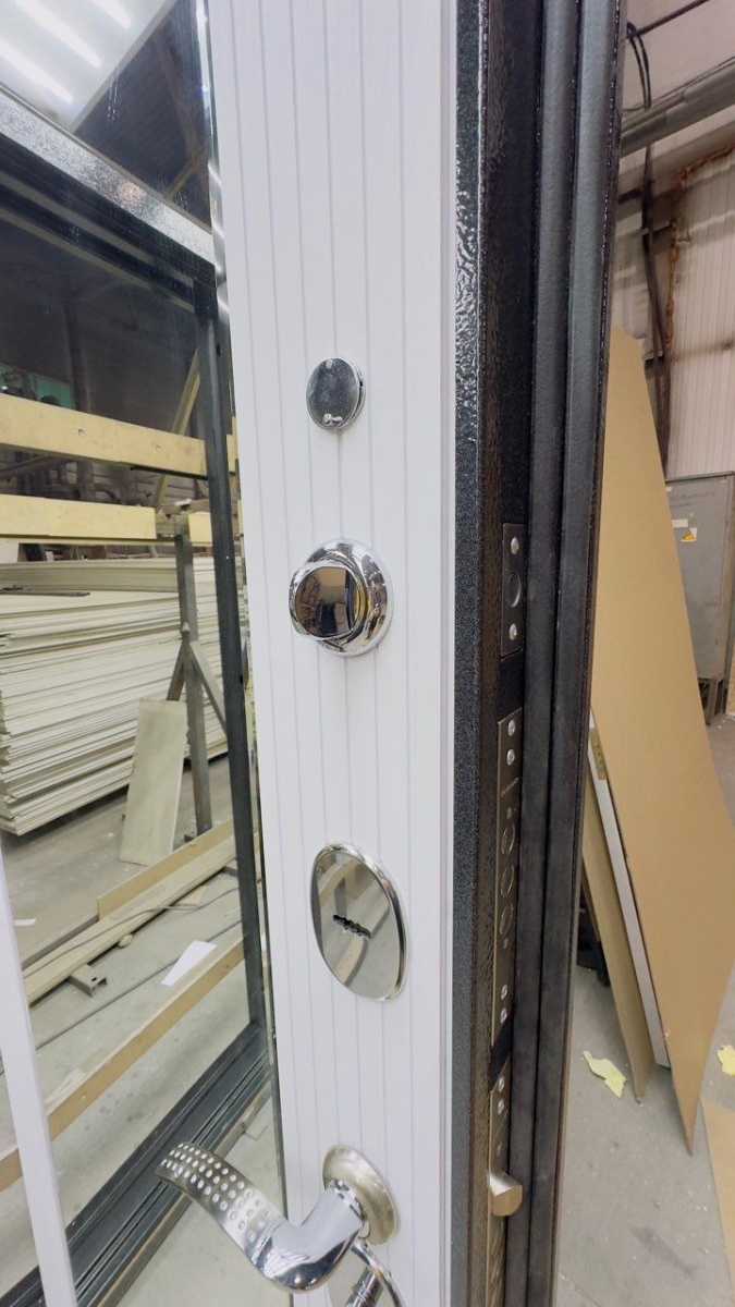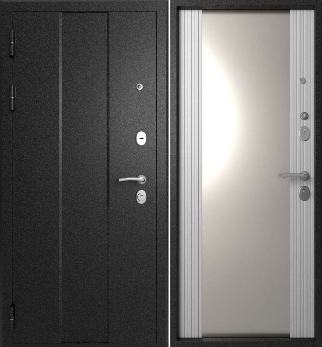 Артикул Дверь стальная Эталон М-5 Черный букле-Белый снег (зеркало) 860 левая