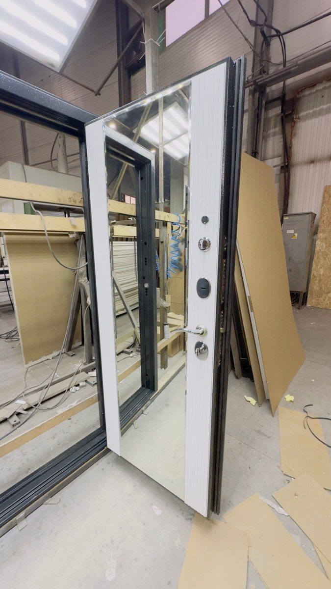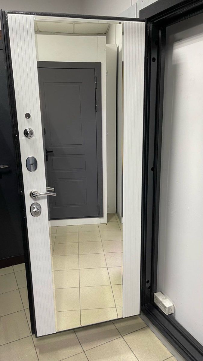 Входная дверь Входная дверь с большим зеркалом Эталон М-5 Черный букле-Белый снег (зеркало) — купить в Одинцово