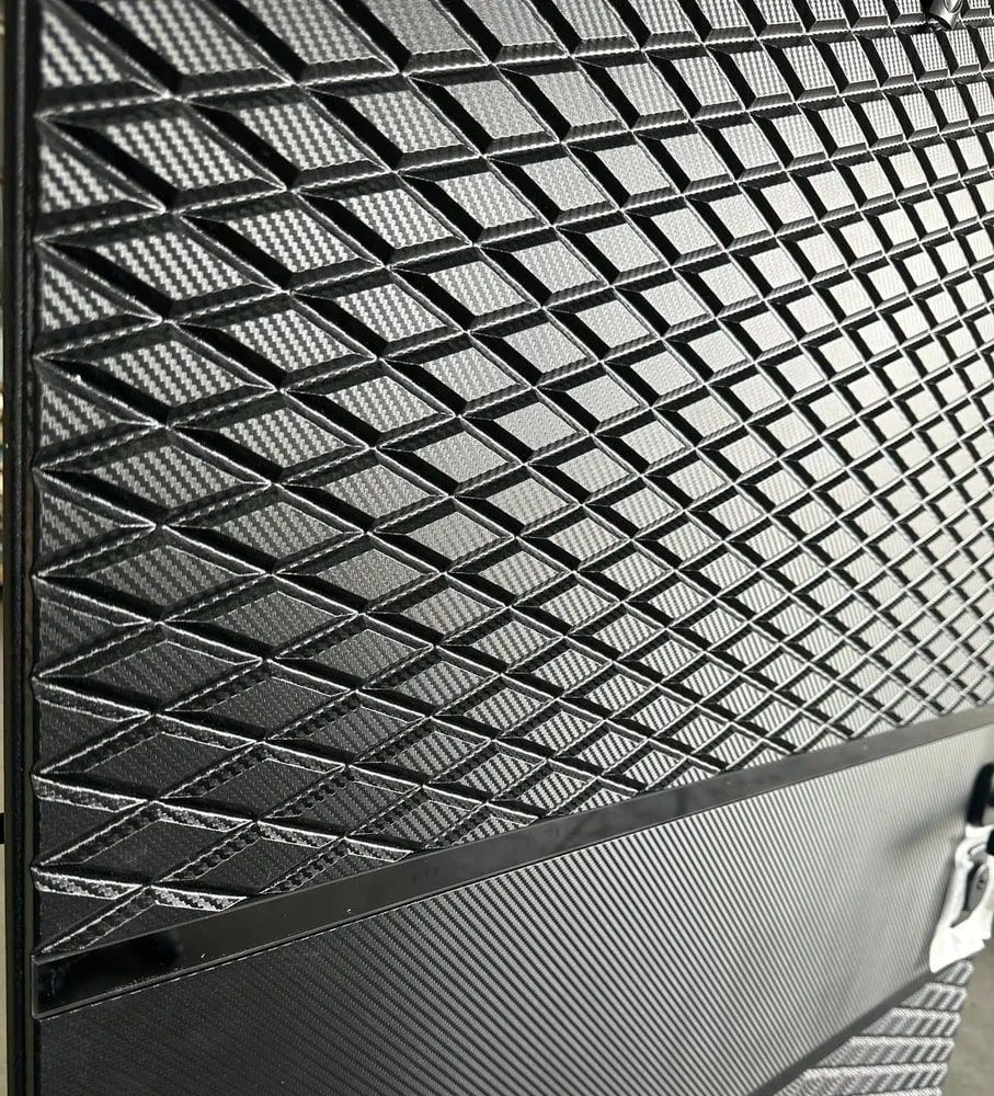• Внешнее покрытие: фрезерованная МДФ-панель 12 мм, цвет пленки «Черный карбон», вставка черный лакобель
