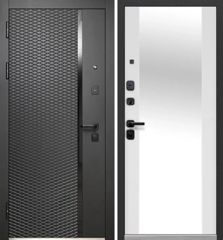 Входная дверь Люксор 2МДФ Ромб Вертикаль Антрацит софт - встроенное Зеркало Эмалит белый — купить в Одинцово в компании RosDoor (Сталь-сервис)