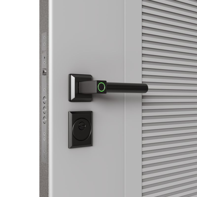 Внешняя ручка может открыть замок движением вниз до упора только после прикладывания ранее внесенного отпечатка пальца