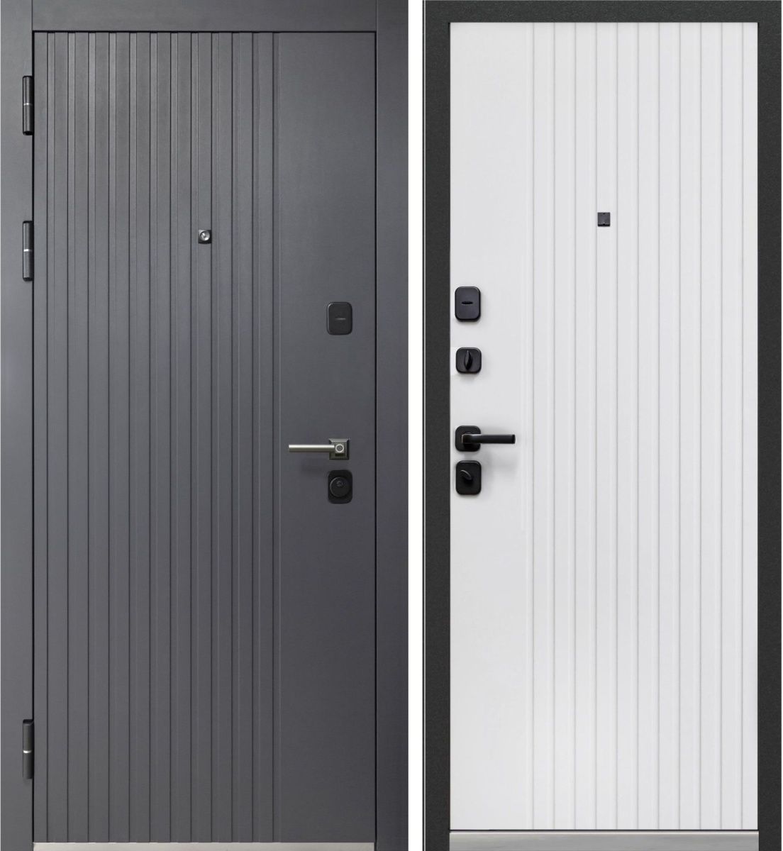 Входная дверь Люксор 2МДФ Вертикаль Графит - Эмалит белый c электронным замком No Key — купить в Одинцово в компании RosDoor (Сталь-сервис)