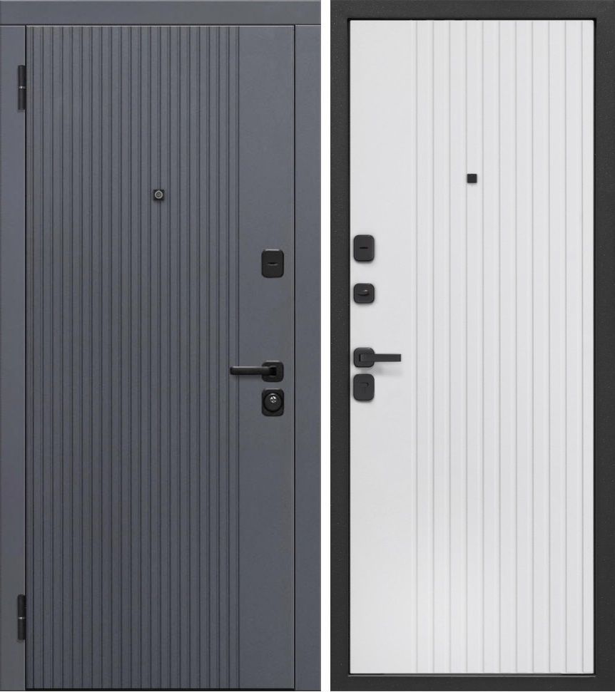 Входная дверь Люксор 2МДФ Вертикаль Сатин графит - Эмалит белый — купить в Одинцово в компании RosDoor (Сталь-сервис)