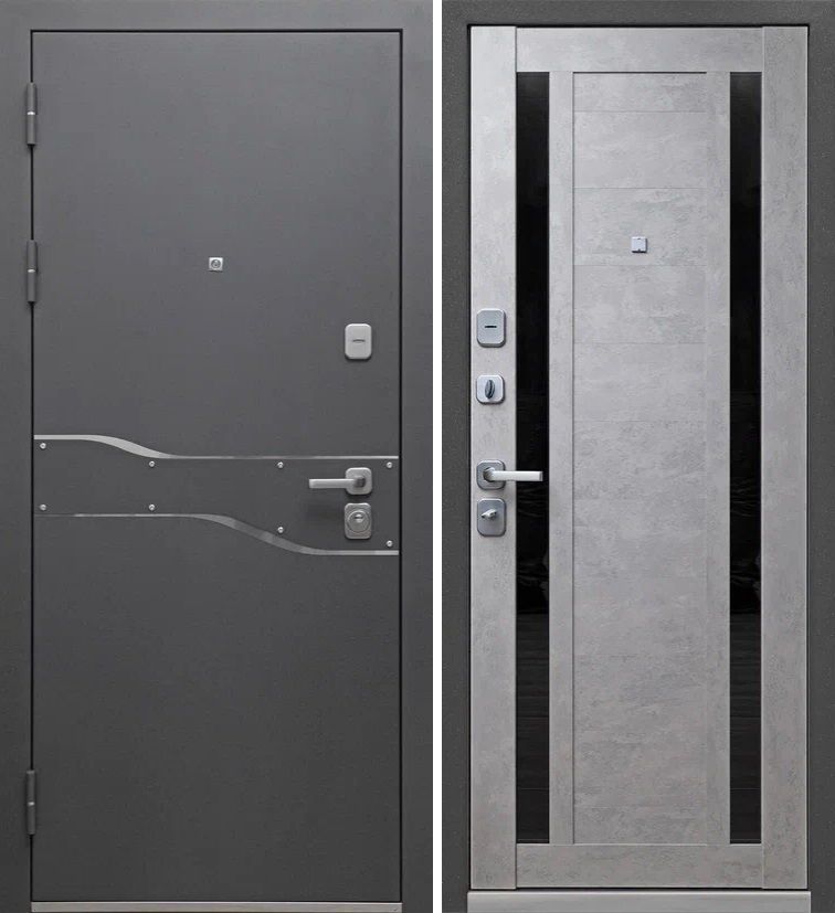 Входная дверь Люксор 2мм Муар антрацит микс темный - Бетон серый Царга (стекло Лакобель) — купить в Одинцово в компании RosDoor (Сталь-сервис)