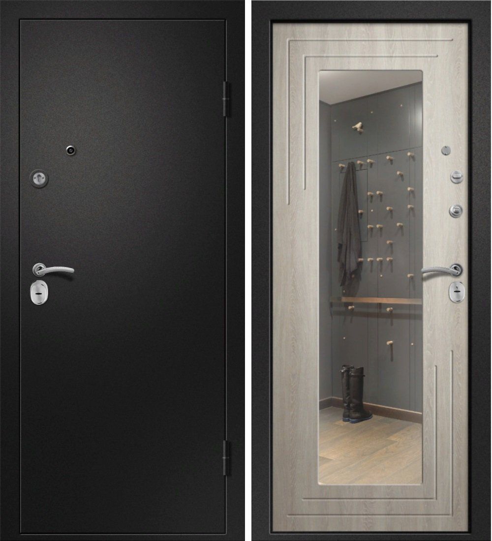 Входная дверь Ретвизан Аризона-222 Сатин черный - Филадельфия крем (зеркало) — купить в Одинцово в компании RosDoor (Сталь-сервис)