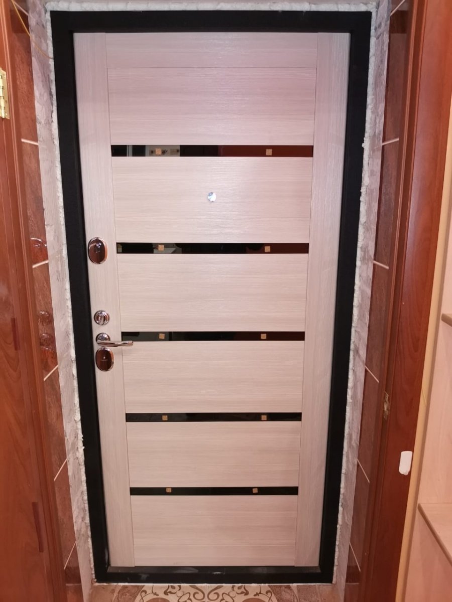 • Внутренняя отделка: царговая МДФ-панель со вставками из тонированного стекла, цвет Лиственница мокко;