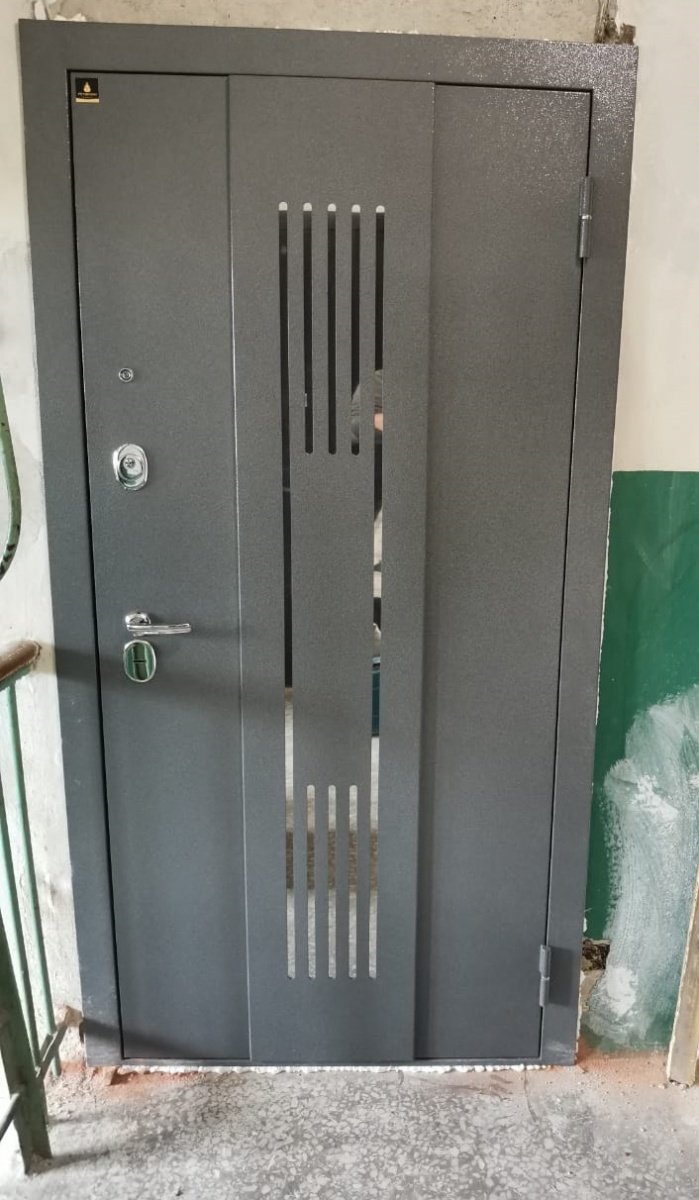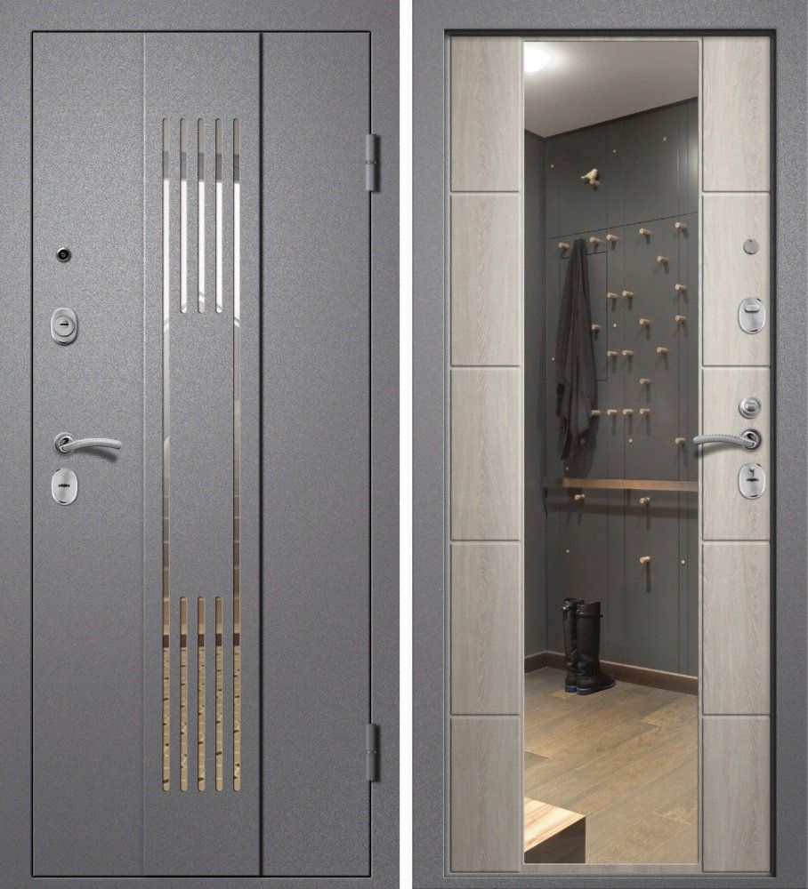 Входная дверь Ретвизан Медея-321 (М5) Букле серый МДФ Филадельфия Грей 113Z Зеркало — купить в Одинцово в компании RosDoor (Сталь-сервис)