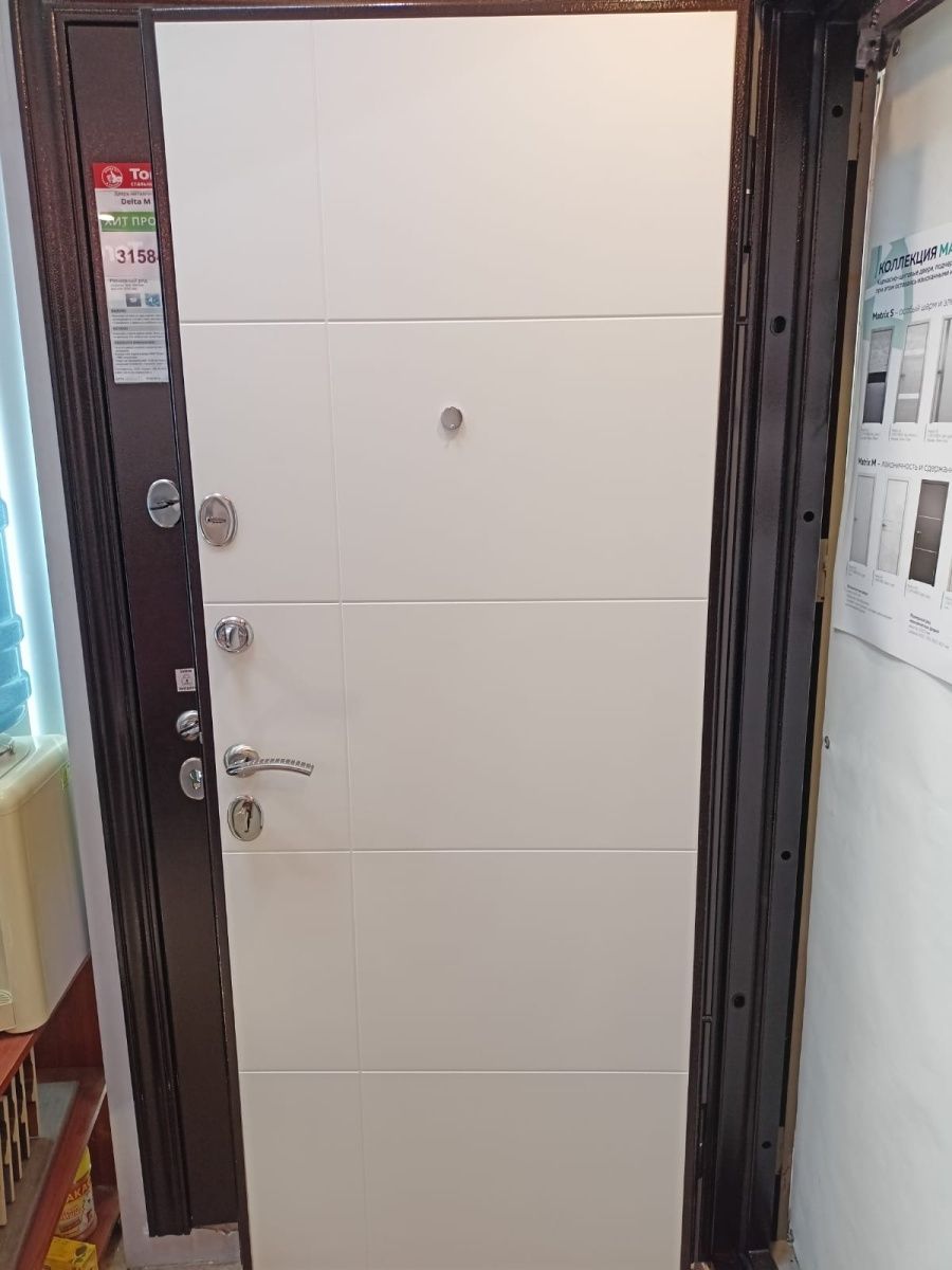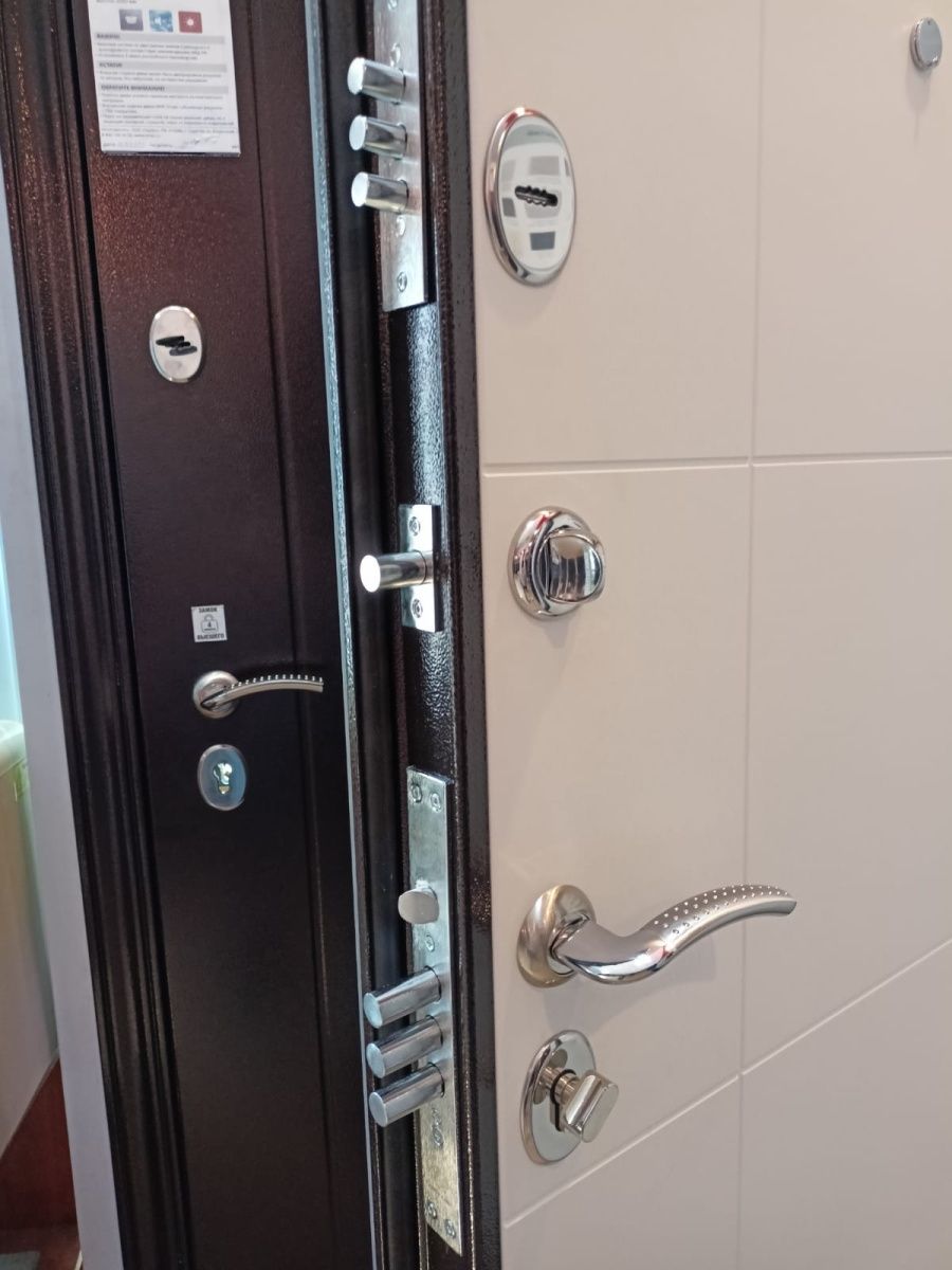Замковая система двери DELTA состоит из двух замков разного типа – сувальдного (2-го класса) и цилиндрового (4-го класса – высшего). Цилиндровый механизм дополнительно защищен броненакладкой из закаленной стали, который применяется в дверях более высокого ценового сегмента.