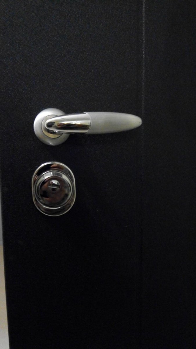 Задвижка с поворотной ручкой для запирания двери изнутри без возможности отпирания снаружи;