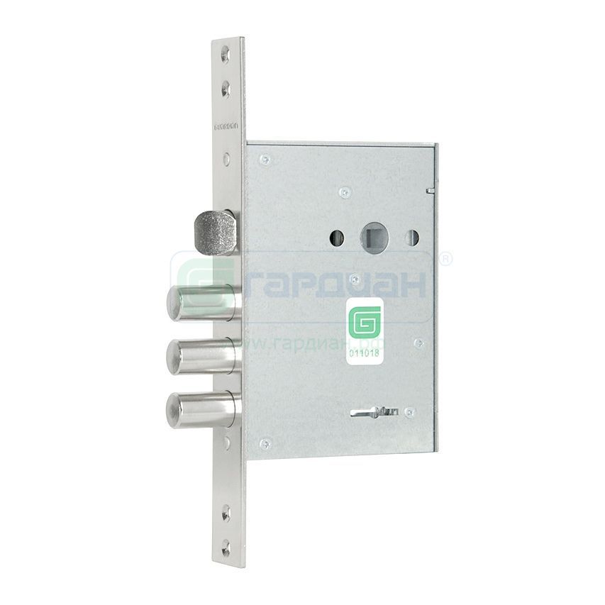 • Основной замок сувальдный: Гардиан 30.11 (3 ригеля) с автоматически смыкающимися декоративными накладками - доп.защита от сквозняка;